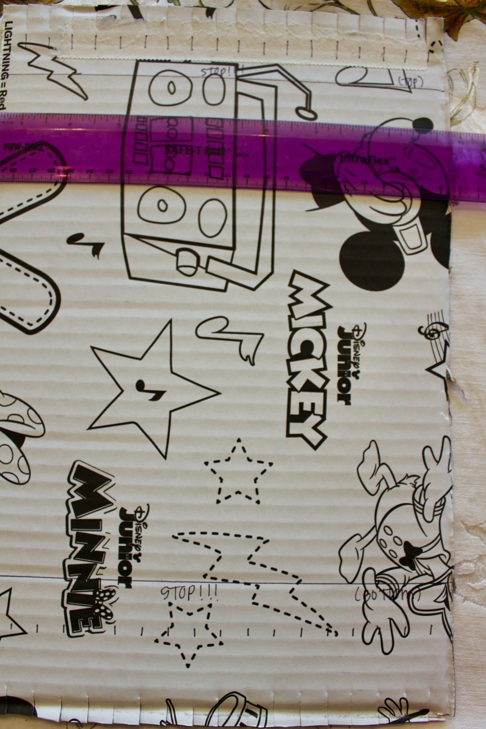 First things first, we’ll make our loom! You’ll measure 1/2 inch marks along the top and bottom of your piece of cardboard. Make sure you have an even number of marks. Then, you’ll make cuts on these marks. Probably about a 1/2 inch tall.