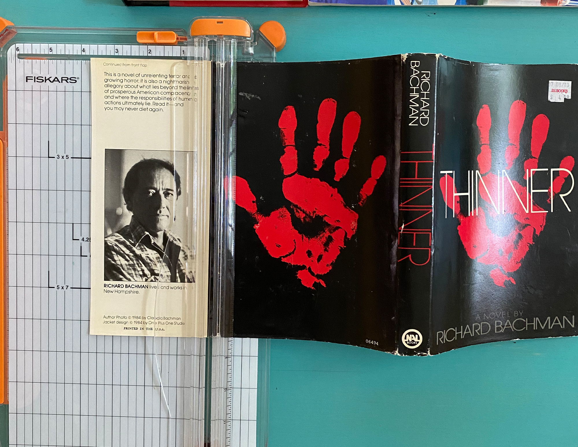 – Red handprint (back of a book sleeve)