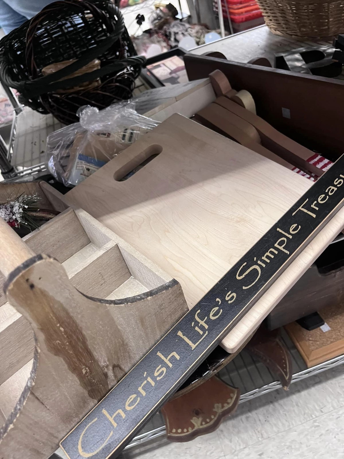 ● Bridal Shower/Wedding Gift Ideas- Placemats, candle holders, taper candles, new unused jar candles, vintage glassware, mirrors, wall art, home décor items, wreaths, wine glasses, champagne flutes, cookbooks, new wooden, marble, or slate cutting boards, candles, wooden spoons, wooden expandable peg racks, matching teacups, or coffee mugs and planters for a live plant. I find wicker picnic baskets often while thrifting. I love to pick these up and use them to create a bridal shower or wedding gift basket. That way the couple can reuse the picnic basket on date nights.