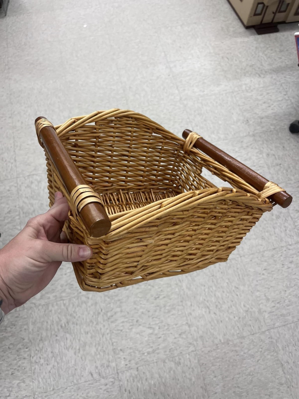● Woven baskets- Every thrift store is stocked with a variety of baskets. Large, medium, and small, some shaped like animals, some shaped like fruit (I recently found an adorable apple basket for a teacher gift), some with compartments, and some picnic baskets. They also come in a variety of colors. This is my favorite base.