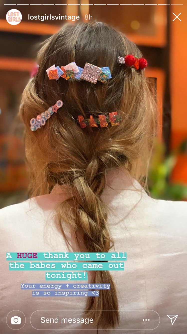 Lost Girls Vintage (a vintage shop in Chicago) shared a DIY Barrette workshop they did in 2019 via their Instagram stories. Snaps below, but I’ve been wanting to recreate something similar since this was originally shared!