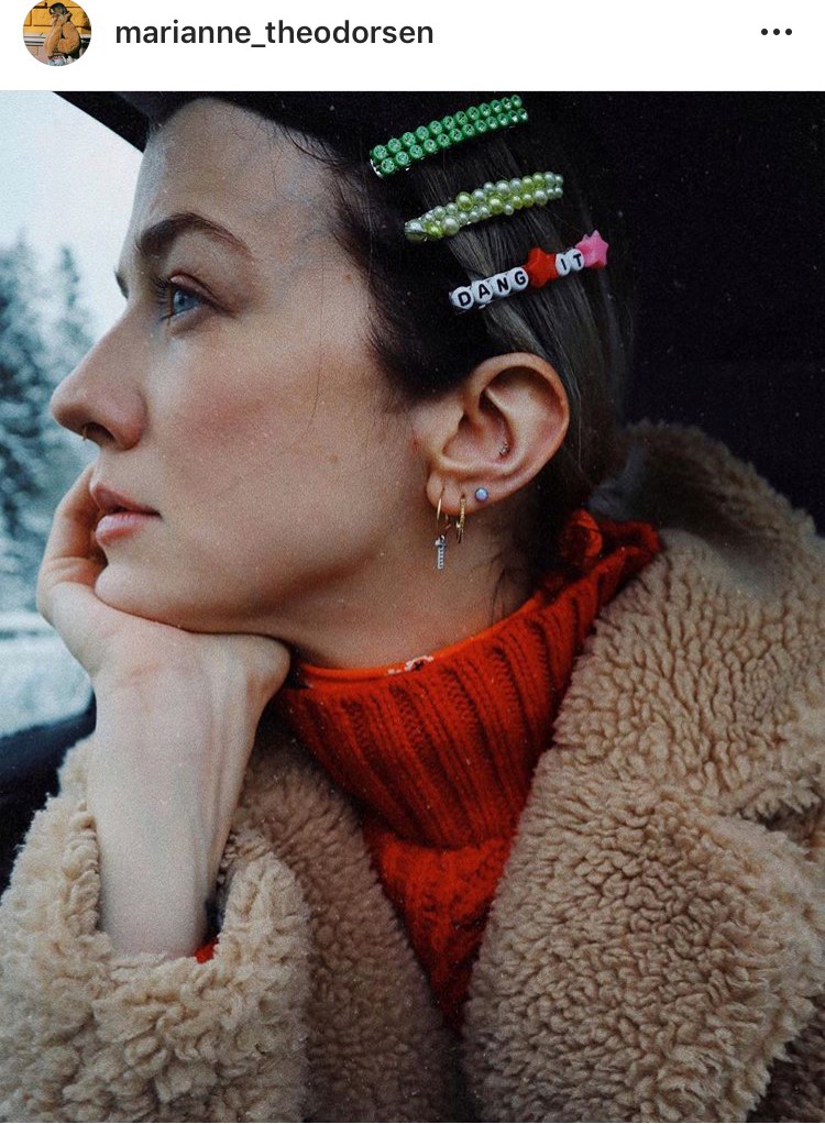In 2018, Marianne Theodorsen shared these fun barrettes via her instagram here. They caught my eye, and I’ve been waiting for the perfect opportunity to make something similar.