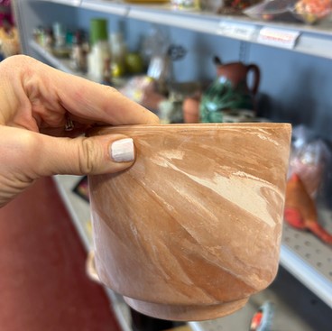 I could not believe the garden pot collection at Goodwill! Perfect timing, too, because Spring is right around the corner. I pulled this natural sandstone plant pot, knowing I have many plants that need new containers. With a touch of creativity and a dash of eco-consciousness, I believe I transformed this humble vessel into a sanctuary for a peace lily, along with a scattering of stones that crown the soil, anchoring the plant in its newfound home.