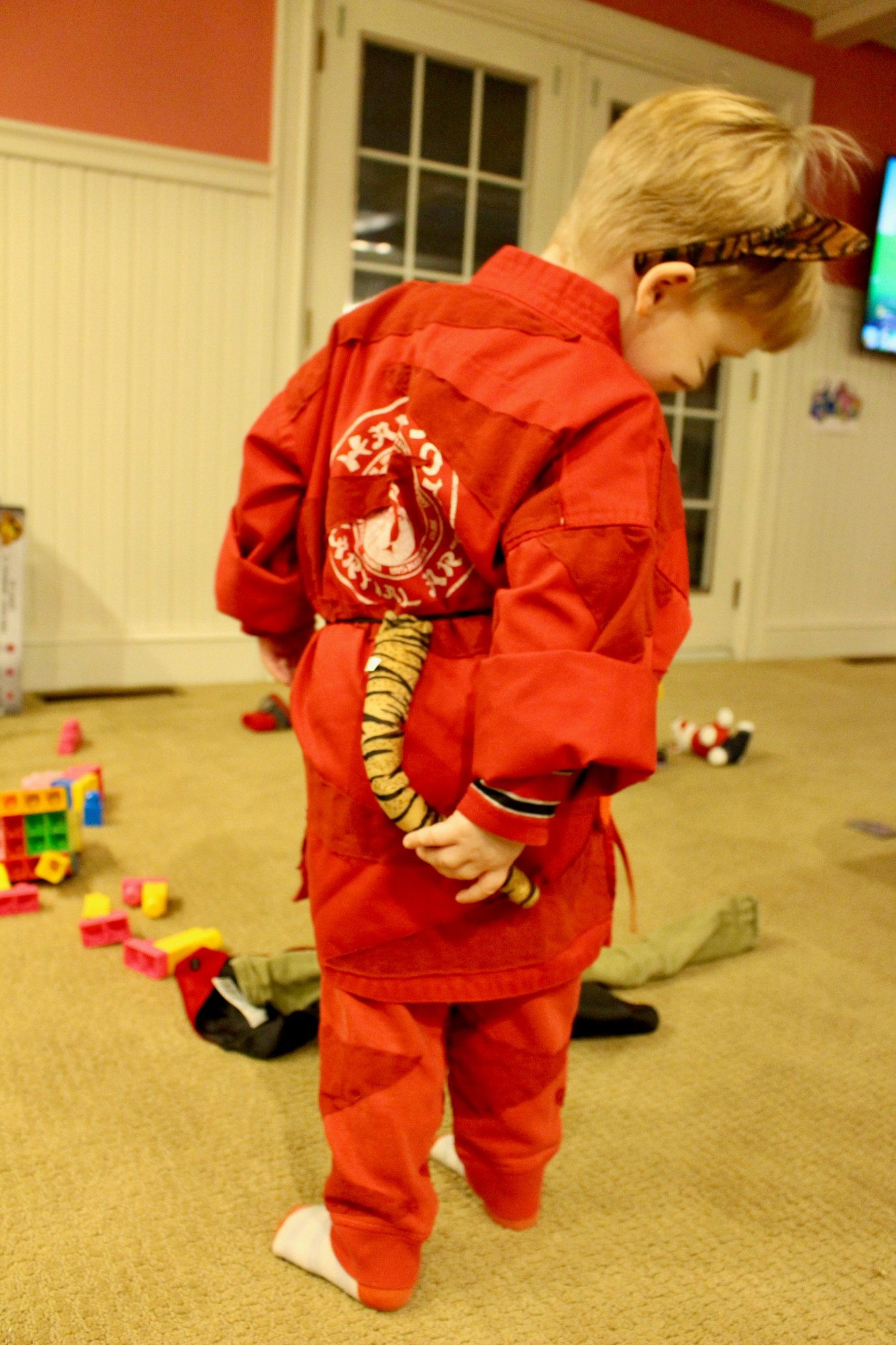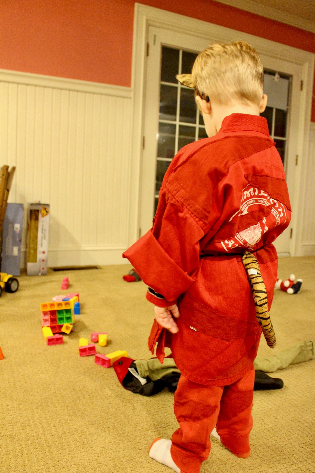 Because my kiddo wanted to be a baby tiger (red with red stripes, don’t forget), there was a little extra work needed for his costume. Read on for how I made a red baby tiger costume.