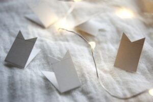 Step 3: Fold each rectangle in half then cut a V shape through both layers using the pencil line as a guide. When you’re done with that, erase the pencil or just write your letters on the opposite side.