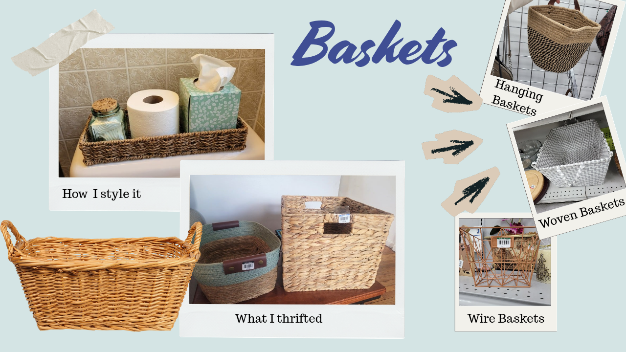 They are a great way to corral your things and help keep your space clutter-free. You can use baskets in almost every room of your home. I love using baskets near my entryway to catch mail. I used a basket under my coffee table for my kids’ drawing supplies. And behind my toilet to hold extra toilet paper. Baskets full price can blow your decor budget, so why not thrift them instead?