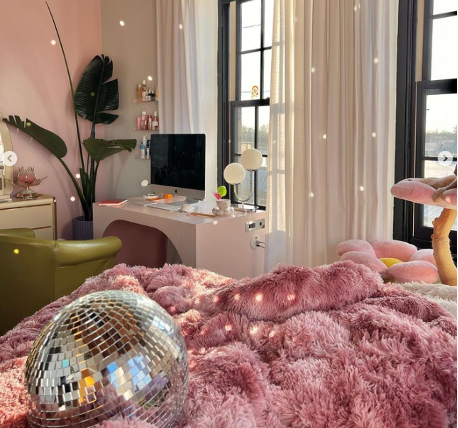 Disco balls are back! Make your work from home set up a party from day to night with bright pops of color and a little bit of shine. This look brings together some of the hottest colors of the spring season, pinks and greens, while creating a happy place space that won’t fail to make you smile, even during the most stressful of days.