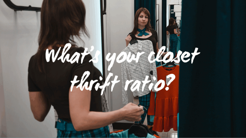 As a new year begins – every store and spokesperson is pushing organization and resolution ideas – it can be so overwhelming to bite off multiple things all at once. So, my suggestion is to start with checking out your closets’ thrift ratio. See how much of your closet is secondhand and make a resolution to PAUSE before pressing buy from that big box store next time you need a wardrobe upgrade or addition and see if you can thrift it first!